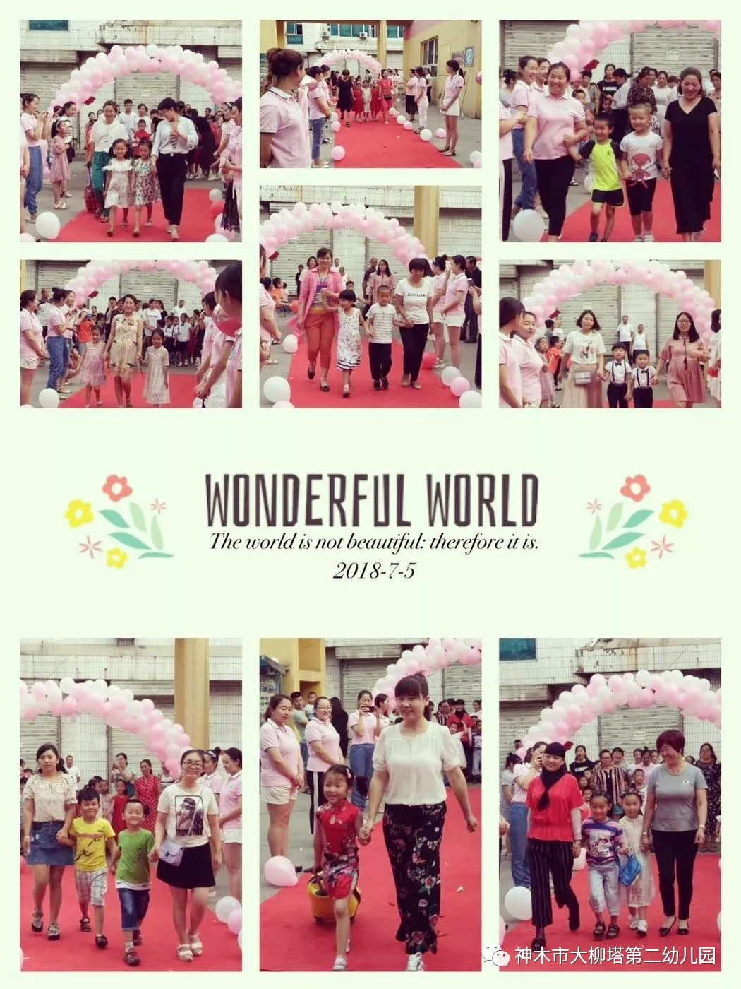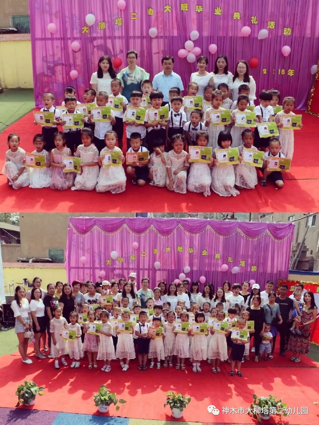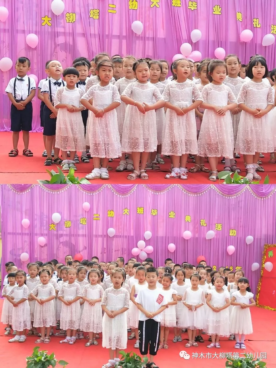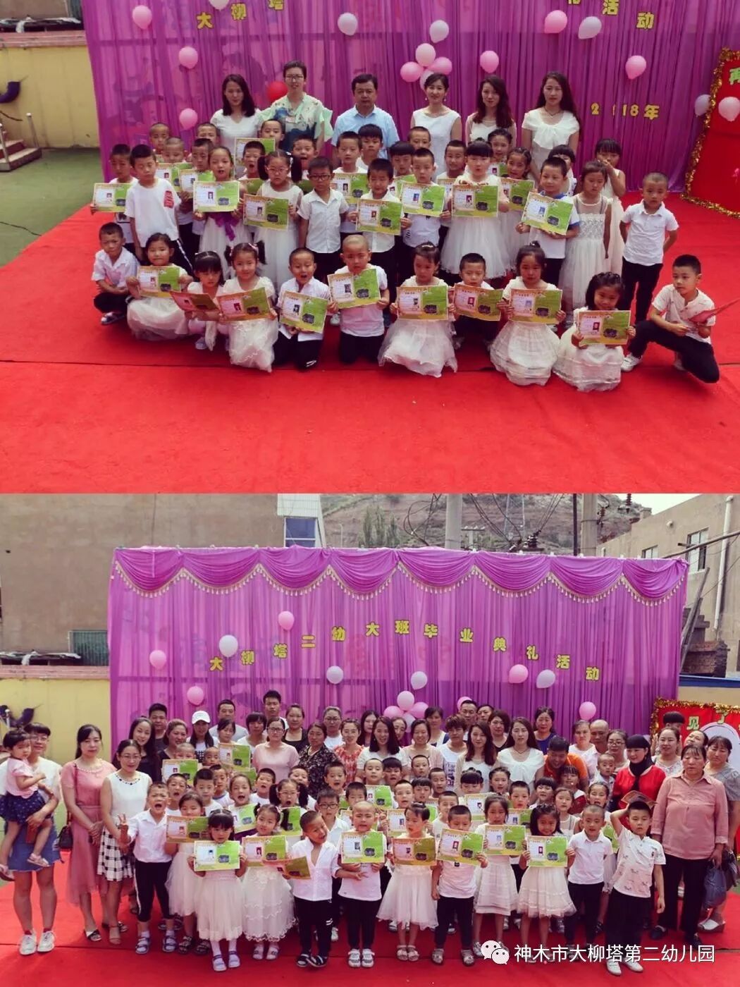 这次的活动是大柳塔第二幼儿园送给孩子们毕业前的一份特别的礼物,三年前从家中懵懂的小宝宝成为今天聪明懂事的小朋友,从家长和老师妈妈的呵护下幼苗成为今天幼儿园的小明星,三年的幼儿园生活和学习让孩子们体验到快乐、收获了成长。三年间,幼儿园在每一名幼儿的心里播撒下爱与希望的种子。  毕业之际,幼儿园每位工作人员都期待孩子们乘着梦想的翅膀飞得更高,飞得更远……