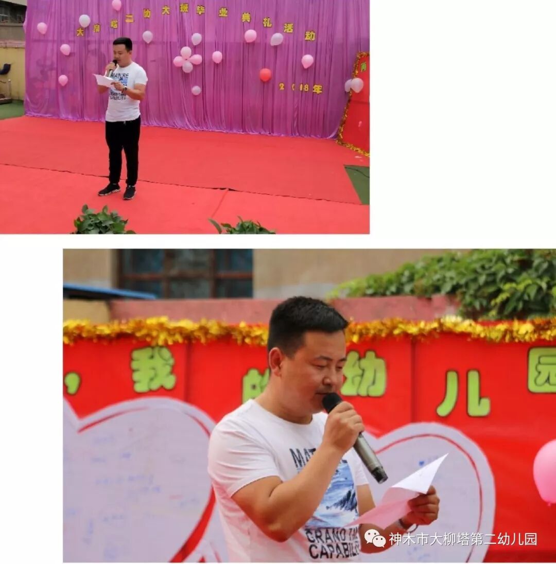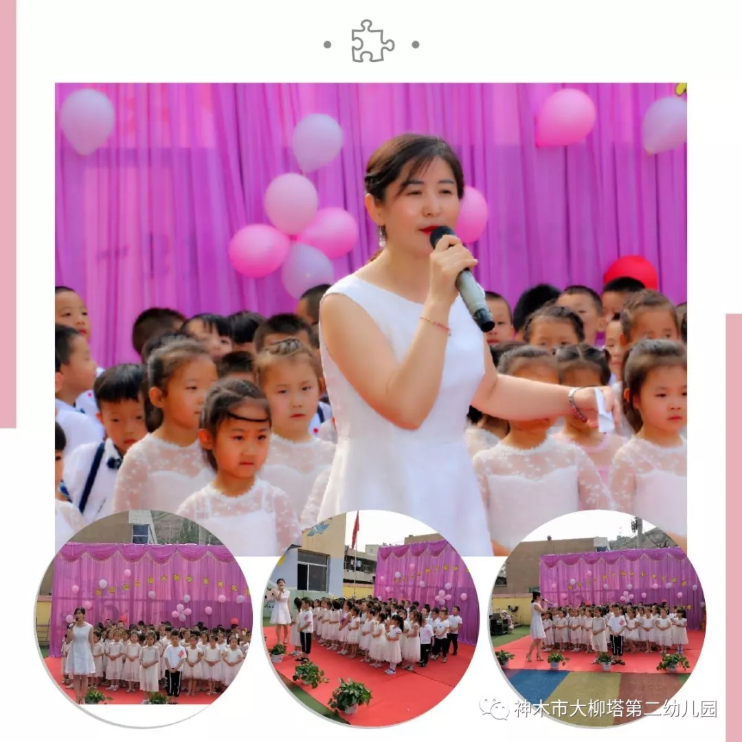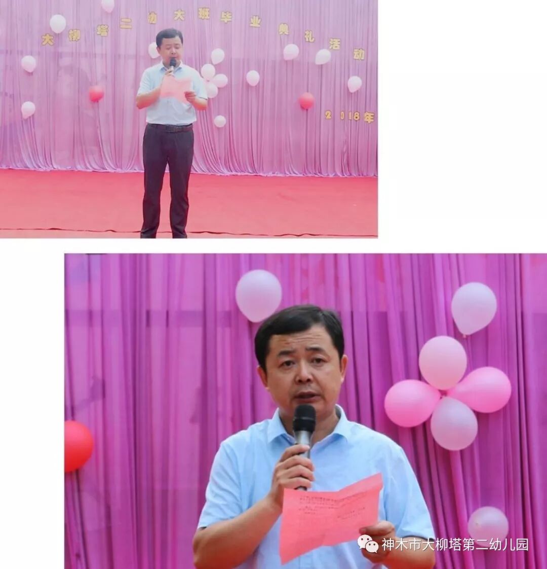 马园长发言,感谢各位家长三年来的支持和配合,我们一起走近孩子、理解孩子、倾听孩子、解放孩子、欣赏孩子、鼓励孩子。愿我们在这片凝聚爱意、放飞希望的地方,手拉着手,心连着心,以浪漫的姿态,去呼吸现代教育的精髓,让每个孩子在我们大柳塔第二幼儿园都拥有最佳的人生开端!